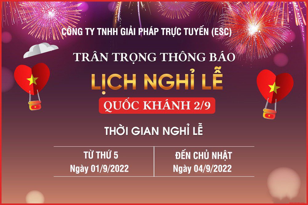 ESC xin thông báo tới Quý khách hàng lịch Nghỉ lễ 2/9 như sau: