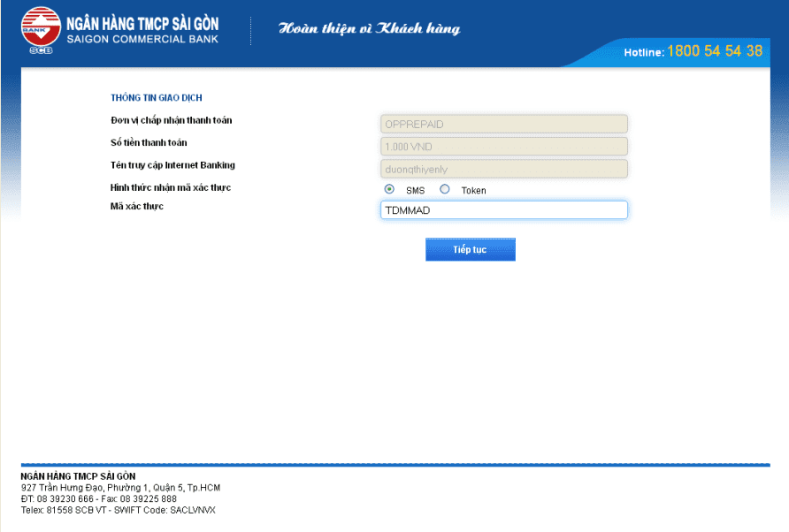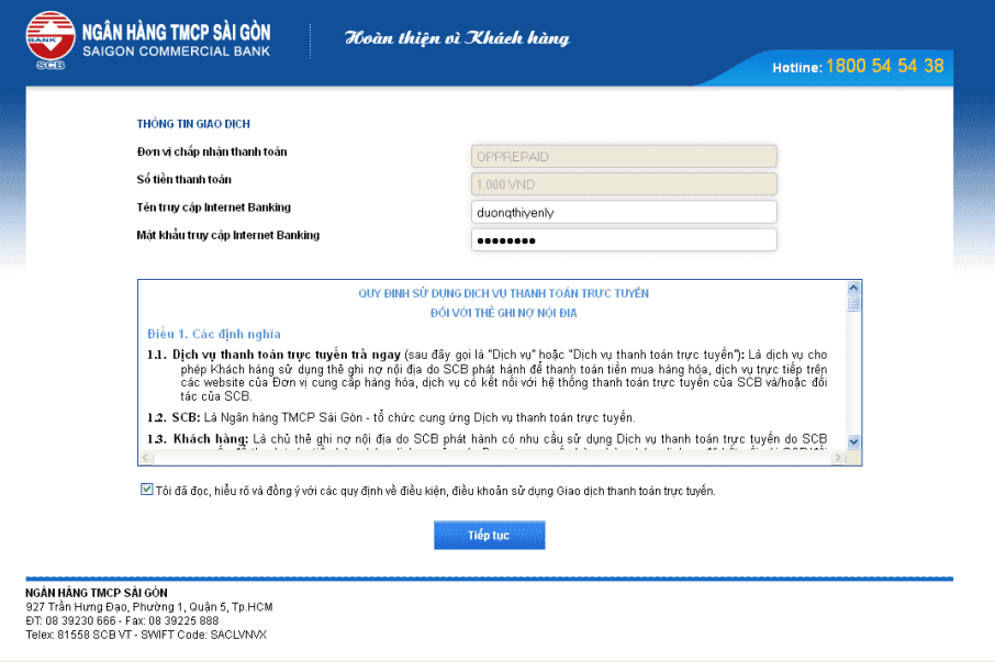 Hướng dẫn thanh toán trực tuyến bằng thẻ nội địa SCB