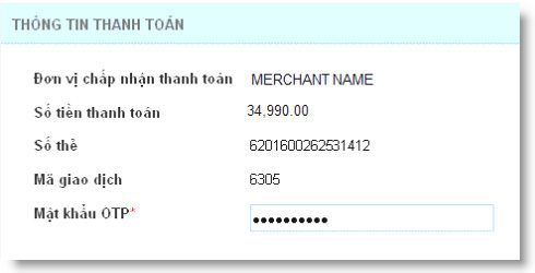 Bước 4: Xác thực chủ thẻ bằng OTP (OneTime Password)