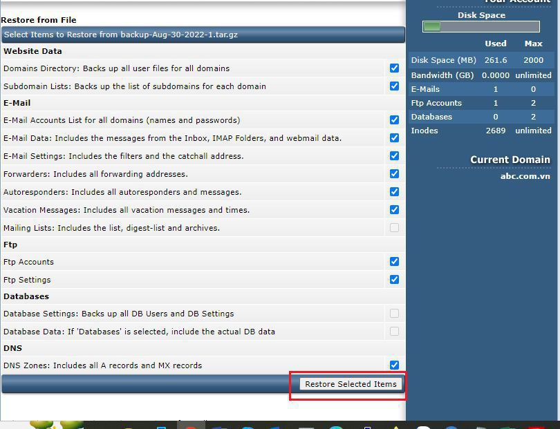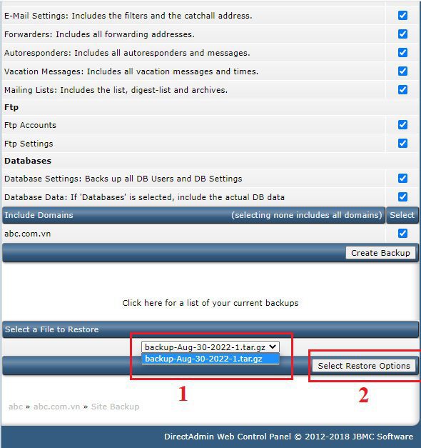 Trong trường hợp website hoặc mail bị lỗi chúng ta sẽ thực hiện Restore lại từ các bản Backup đã có