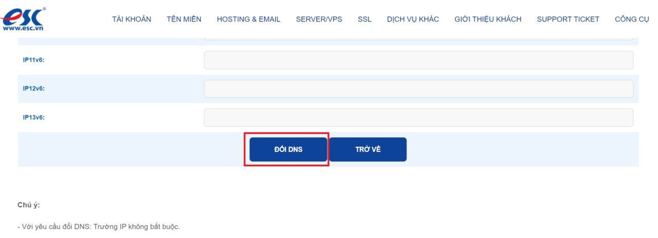Trong bài này ESC sẽ hướng dẫn bạn đổi cặp Name Server của tên miền