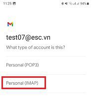 B2: Chọn Personal ( IMAP) nếu bạn muốn cấu hình theo giao thức IMAP , ( bạn có thể tìm hiểu sự khác nhau giữa IMAP và POP3 Click Here)