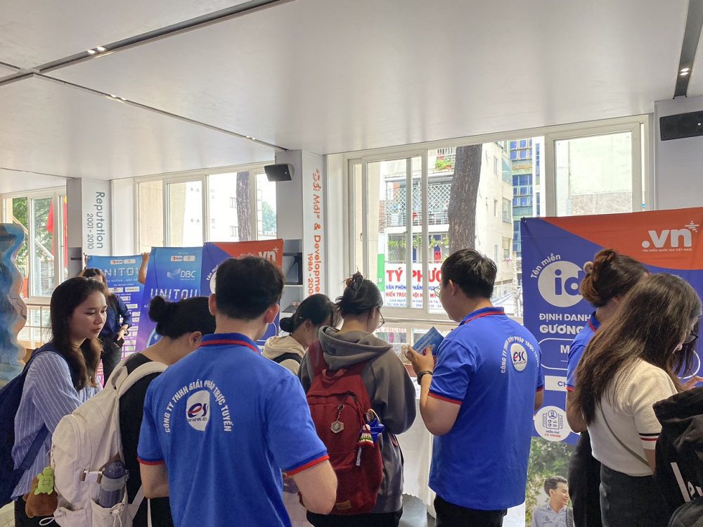 Gian Hàng Triển Lãm: Tại các gian hàng triển lãm, các doanh nghiệp trưng bày những sản phẩm và dịch vụ công nghệ tiên tiến nhất. Sinh viên có cơ hội khám phá, học hỏi và thậm chí là tìm kiếm những cơ hội việc làm hoặc thực tập. Tại đây, Trung tâm Internet Việt Nam và ESC triển khai chương trình hỗ trợ miễn phí 100% cho sinh viên hiện diện online với tên miền .id.vn cùng hệ thống CV online.