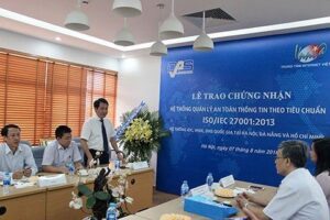 Lễ trao chứng nhận “Hệ thống quản lý an toàn thông tin theo tiêu chuẩn ISO/IEC 27001:2013 trong hoạt động quản lý vận hành các hạ tầng trọng yếu của mạng Internet Việt Nam là hệ thống máy chủ tên miền DNS quốc gia .VN, hệ thống Trạm trung chuyển Internet quốc gia VNIX và hạ tầng trung tâm dữ liệu (IDC) tại Hà Nội, Đà Nẵng, TP.HCM” do Tổ chức đánh giá và cấp chứng nhận DAS Vương quốc Anh cấp cho Trung tâm Internet Việt Nam – VNNIC vừa diễn ra hôm nay, ngày 7/8/2018 tại Hà Nội.