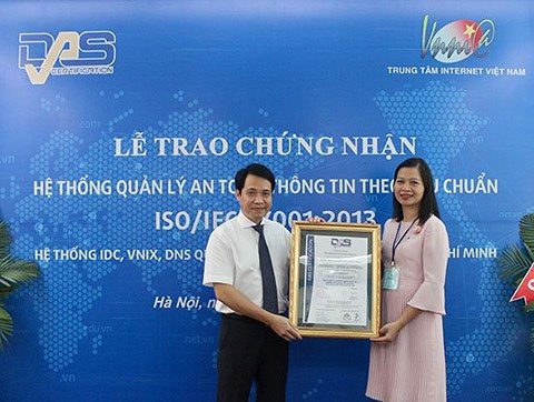 VNNIC cho biết, từ tháng 6/2015, hệ thống quản lý an toàn thông tin trong công tác quản lý hệ thống máy chủ tên miền quốc gia .VN và hệ thống tại Hà Nội của VNNIC cũng đã được tổ chức DAS chứng nhận đạt chuẩn ISO/IEC 27001:2013 với thời hạn 3 năm, từ tháng 6/2015 đến tháng 6/2018. Việc áp dụng ISO 27001 tại VNNIC đã được thực hiện chặt chẽ, hiệu quả đảm bảo hoạt động an toàn ổn định của hệ thống DNS quốc gia trong suốt 18 năm liên tục không có bất kỳ 1 sự cố gián đoạn dịch vụ nào, việc truy cập tên miền quốc gia .VN được thông suốt, góp phần đảm bảo hoạt động an toàn của mạng Internet Việt Nam.
